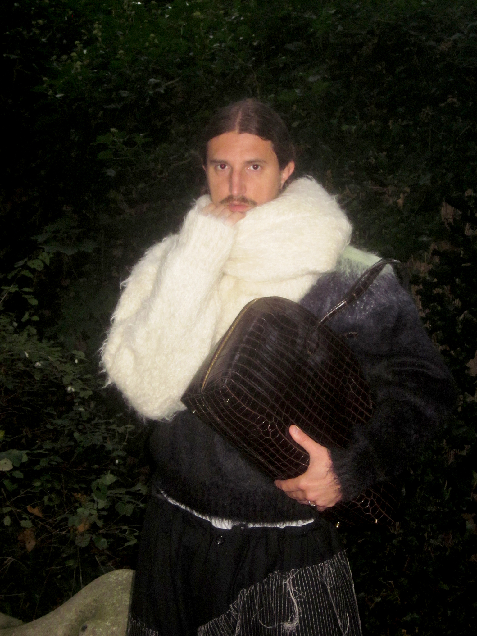 He wears Martine Rose and Jil Sander — two opposite poles of expression. Martine Rose, with its raw, subversive energy that celebrates human awkwardness; Jil Sander, with its purity of form, silence, and balance. The result isn’t a clash, but a dialogue: like two people in love who don’t speak the same language yet still understand each other perfectly.