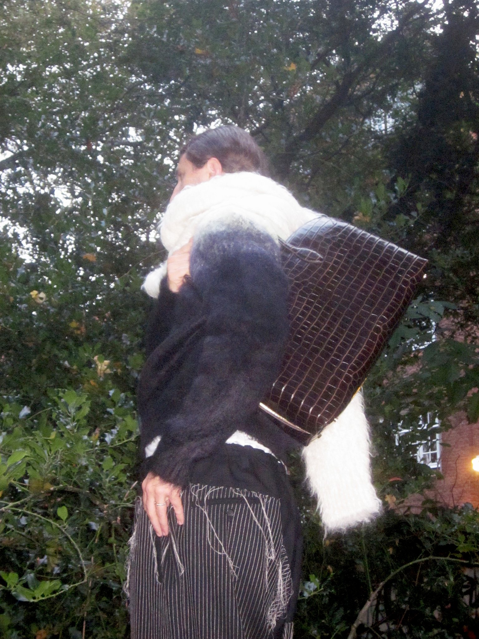 His Maison Margiela sprinters in washed grey carry the trace of the city’s pavements — worn, poetic, and precise — while UGGs add a hint of disarming warmth, a touch of imperfection that brings him back to something deeply human. This is not about fashion as perfection; it’s about fashion as memory, as texture of feeling.